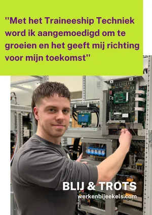 Bij ons traineeship Techniek staat jouw groei centraal. We moedigen je aan om je talenten te ontwikkelen en bieden je de richting die je nodig hebt voor een succesvolle toekomst in de technische sector. Daarvoor krijg je de mogelijkheid om binnen onze verschillende business units en haar afdelingen jouwzelf te ontwikkelen. Met een combinatie van een hands-on aanpak, professionele begeleiding en uitdagende projecten, bereiden we je voor op een veelbelovende carrière bij Eekels!