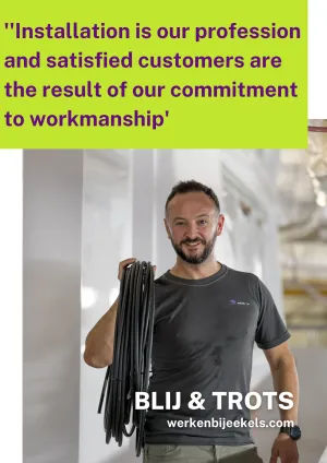 Technology with a sustainable impact! That is our slogan, which we use to express our commitment to having an impact on the world around us. Our products and systems are not just empty words, they are backed up by deeds. Something we are justifiably proud of too! Together we are working on a better tomorrow. Join team Eekels!