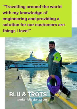 At Eekels, we endeavour to inspire and support our employees in making their (career) dreams come true. For some of us, this means combining global travel with the delivery of technical solutions to our customers. Do you have an adventurous spirit as well as technical expertise? Then you can contribute to our success on an international level!